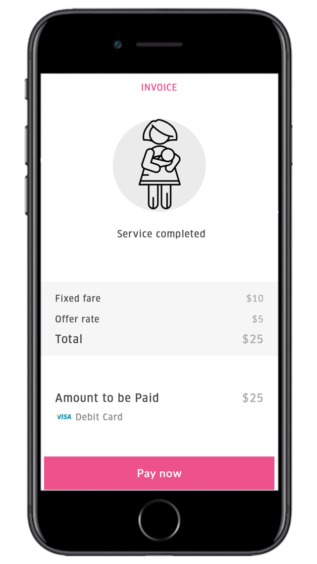 The app automatically calculates the final bill for the parent taking many factors into consideration like the specialist fee, distance to be covered, etc.